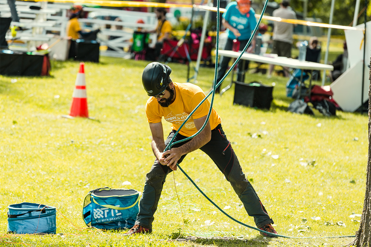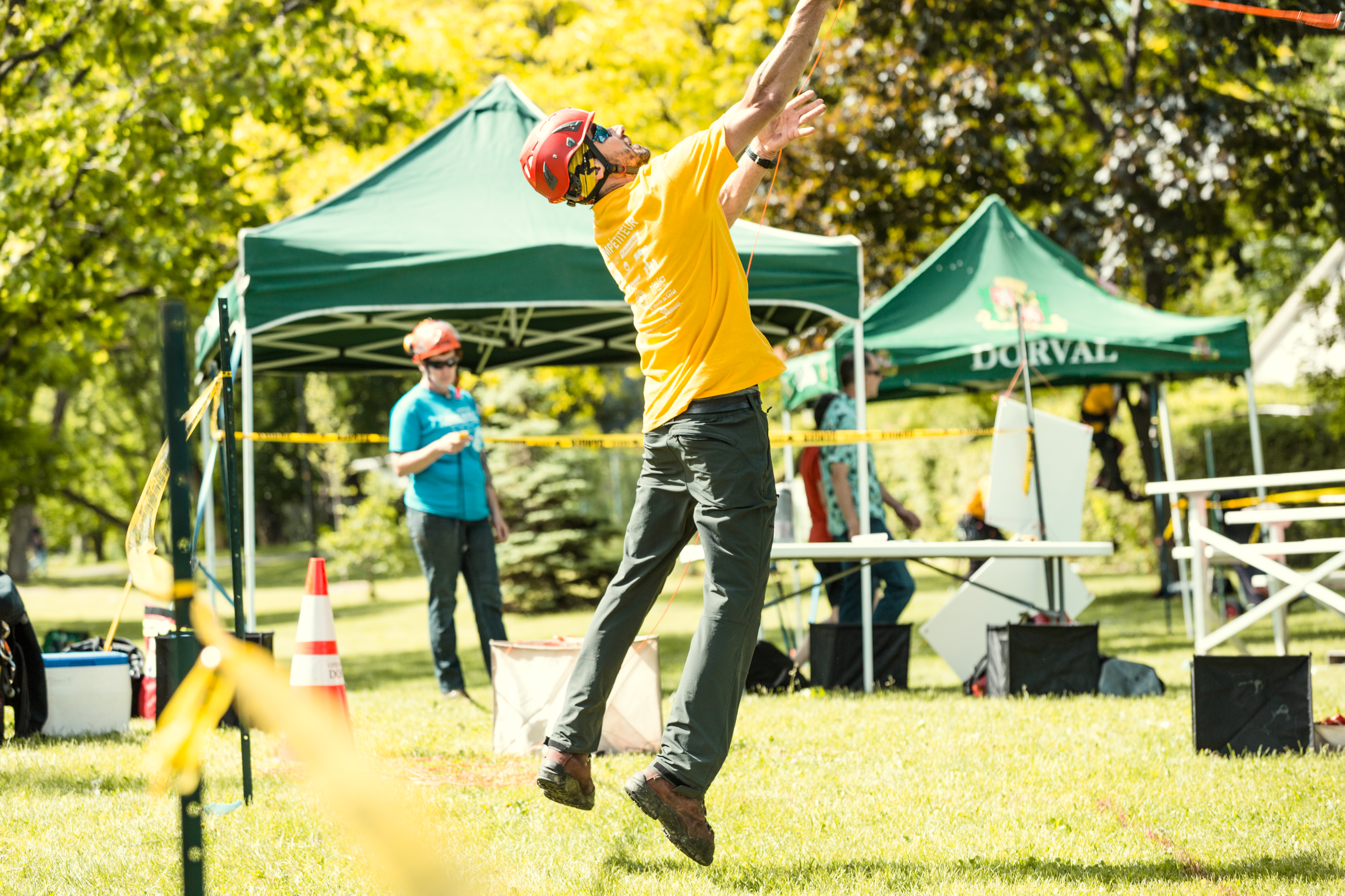 The Quebec Tree Climbing Championship is a competition of skill and movement in the trees. Participants from all over Quebec compete in five events related to the trade of tree climber, in order to crown the Quebec champion. This is a competition involving professionals in the trade. The male and female winners of the events will then be invited to represent the Quebec chapter at the International Tree Climbing Championship. Several free activities are organized in conjunction with this competition, including a fun climb for children, tree giveaway, awareness activities, a gear and equipment exhibition and much more. For more details on each event, keep scrolling.