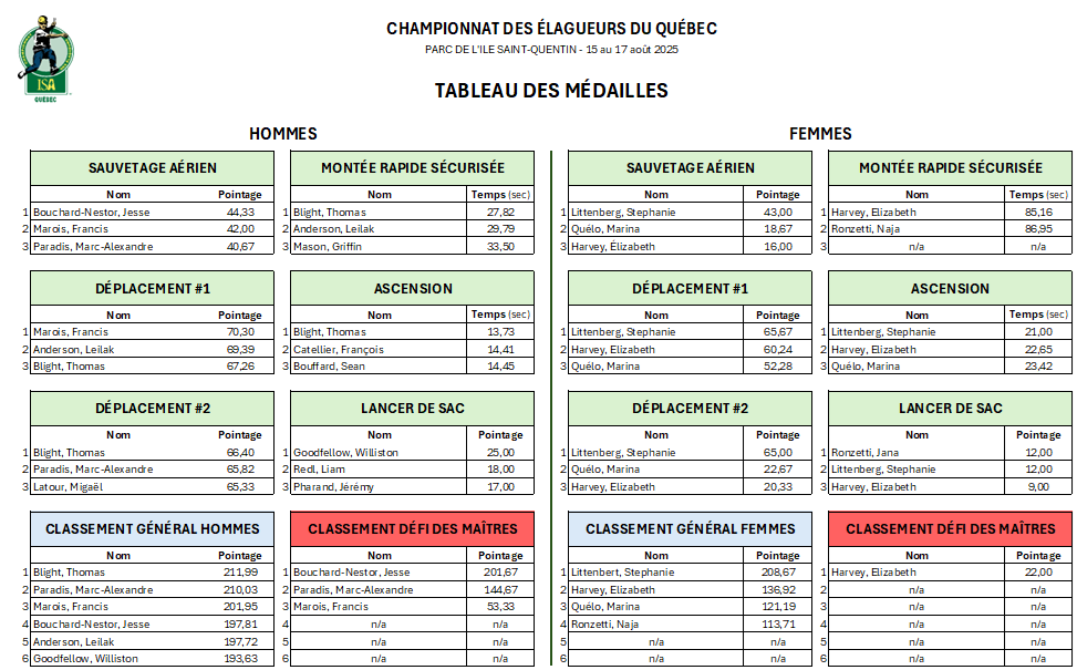 The eligible 2025 champions will represent the SIAQ at the International Tree Climbing Championship in St. Louis, Missouri, in the fall of 2026.